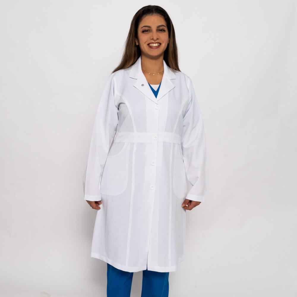 لاب كوت طبي نسائي دكتور فاشن سقنتشرز مع الحزام الخيار المثالي لكل من ترغب في مظهر أنيق مع راحة استثنائية في بيئة العمل. بفضل طوله المريح 40 إنش، ...